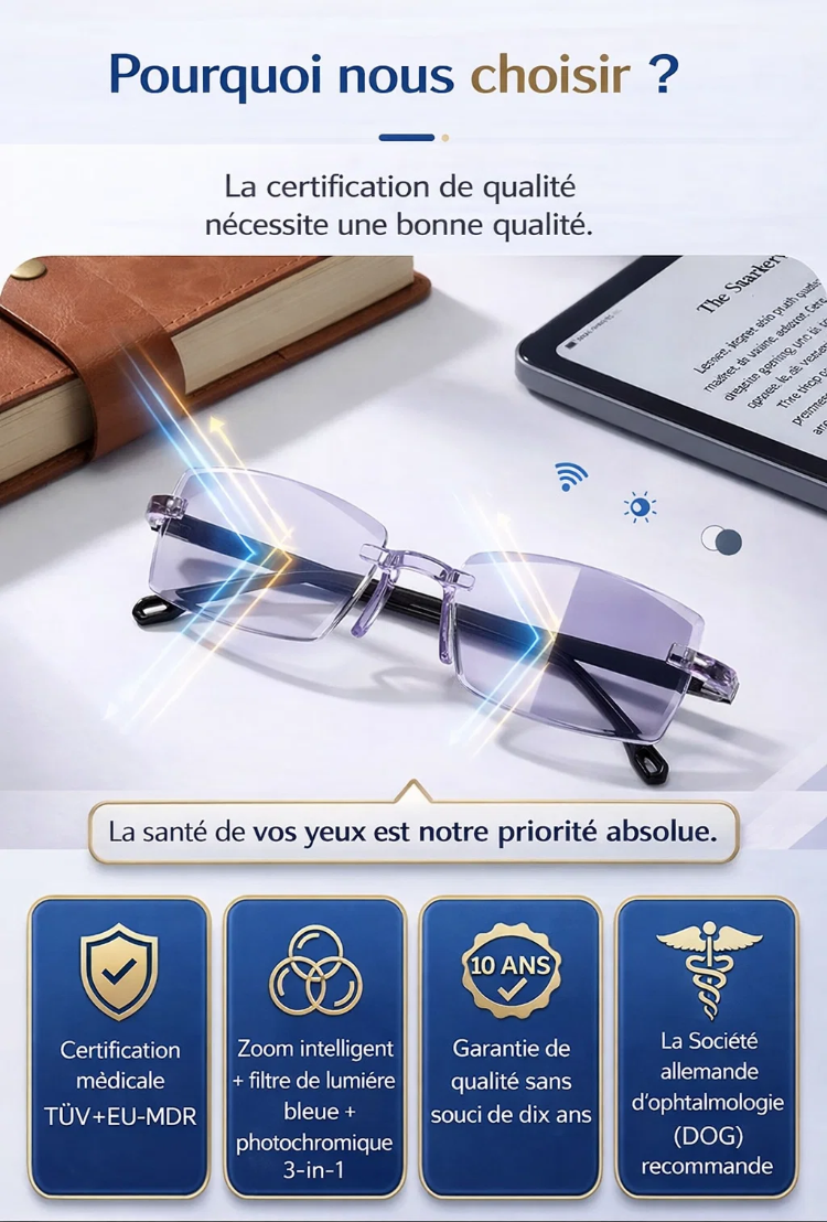 Lunettes intelligentes et confortables pour presbytie en haute définition